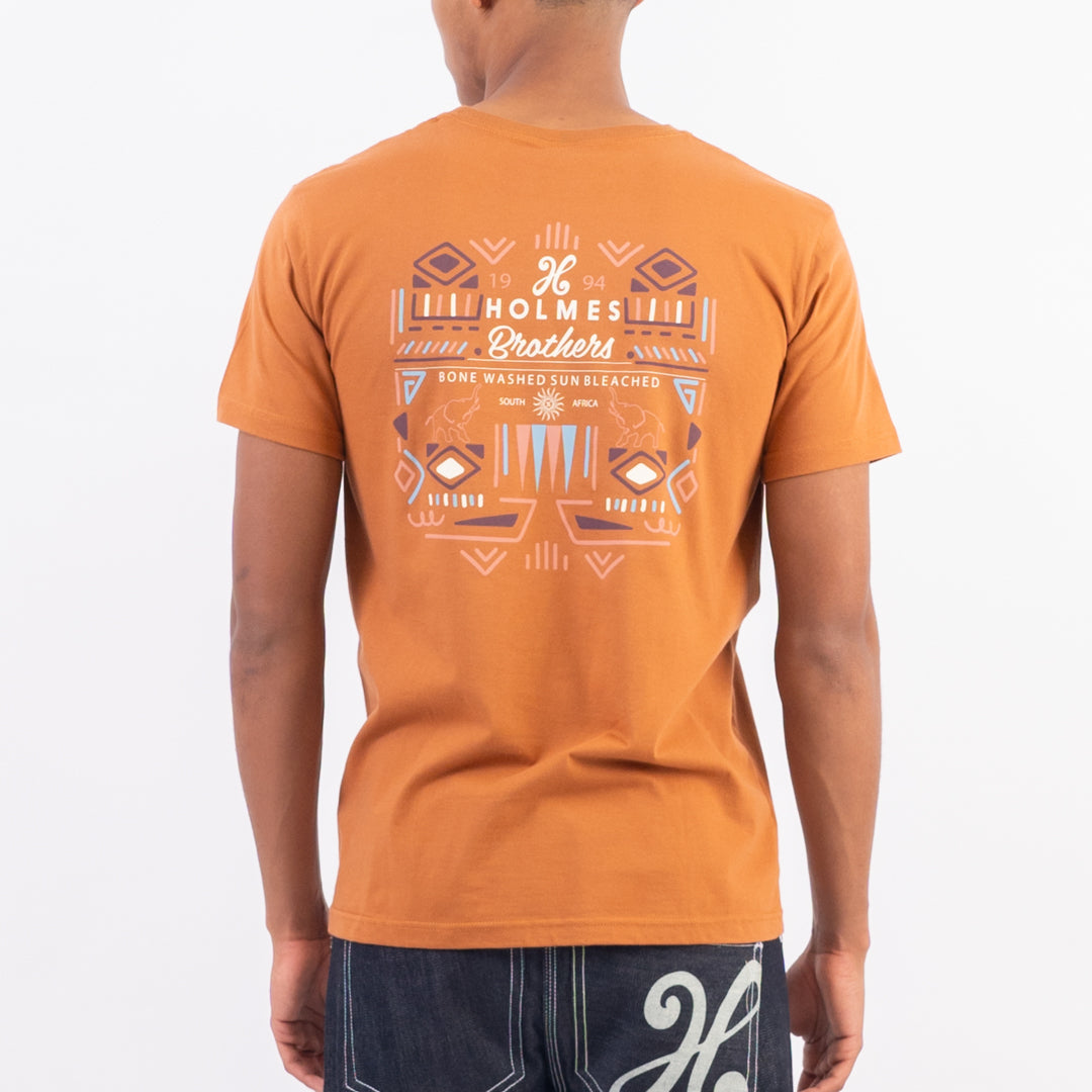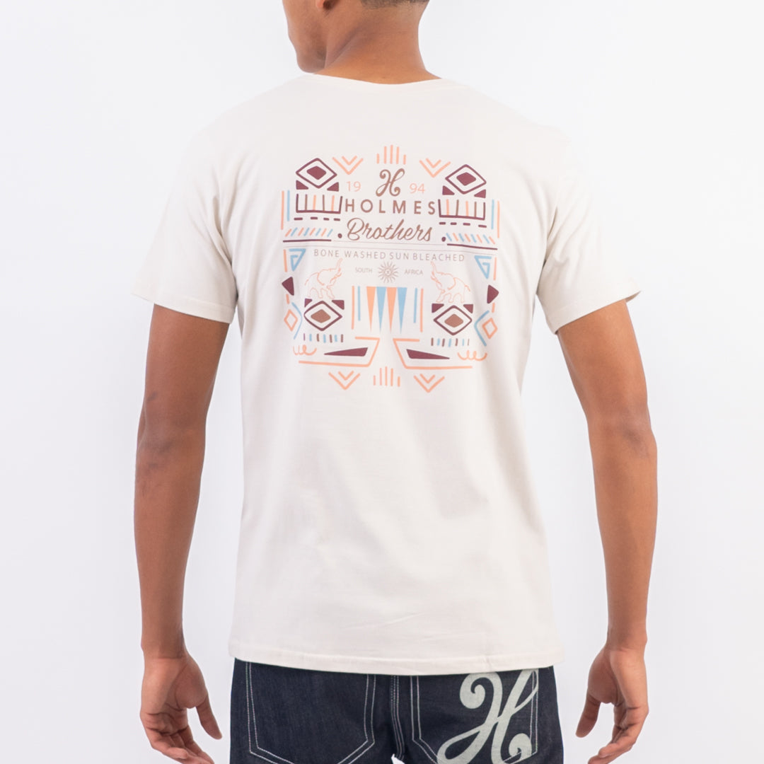 The Pattern Tee is a cotton crew neck tee featuring an African front and back print.