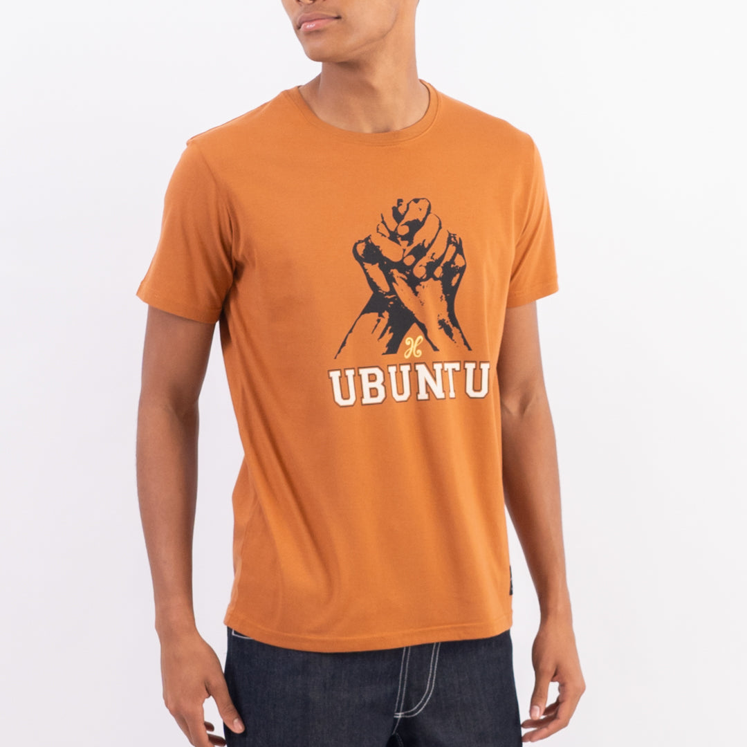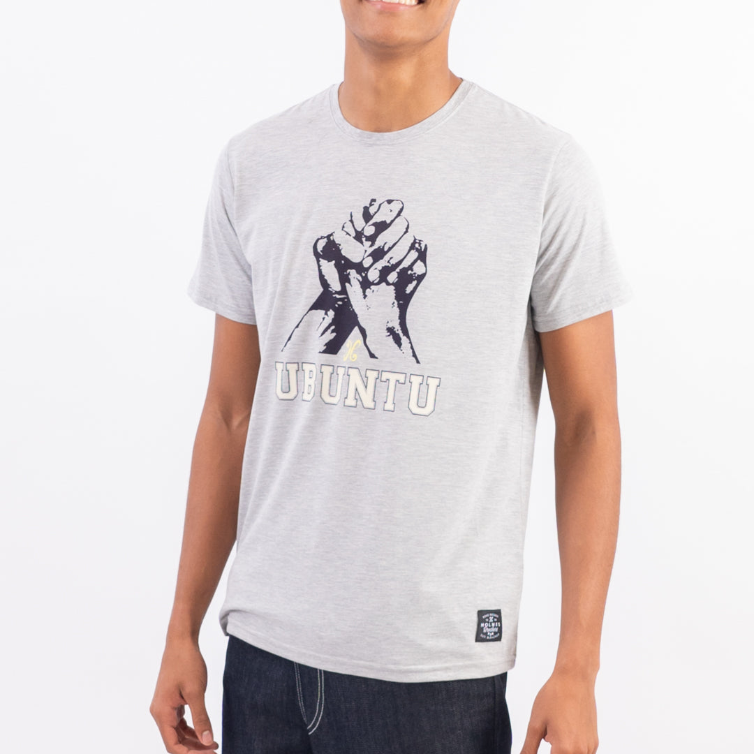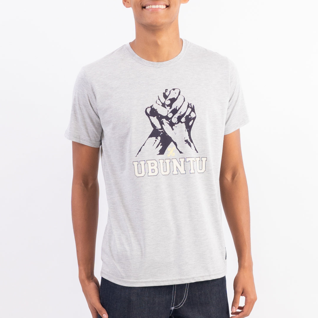 The Ubuntu Hands Tee is a cotton crew neck tee featuring a print of two hands. Ubunto means together in Zulu.