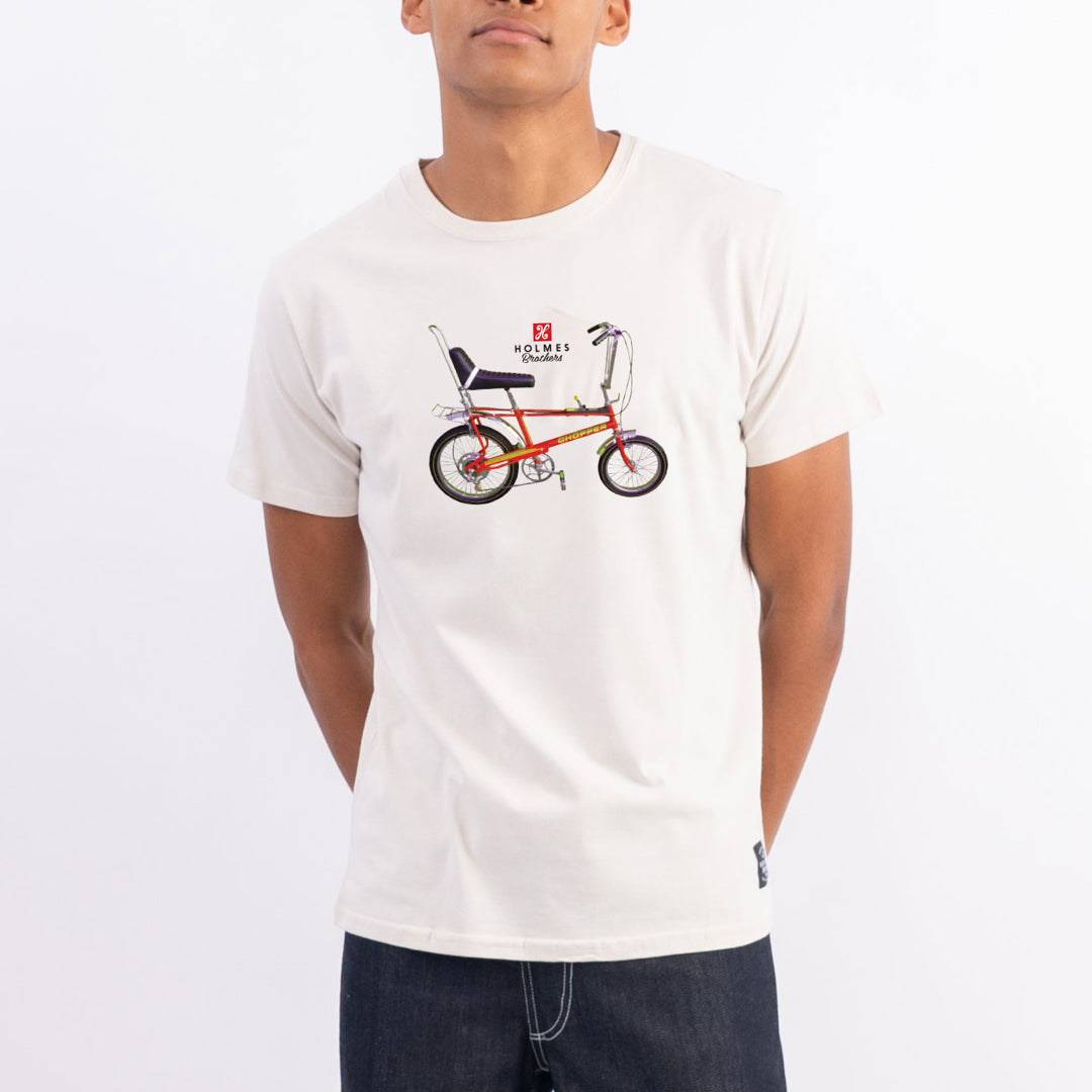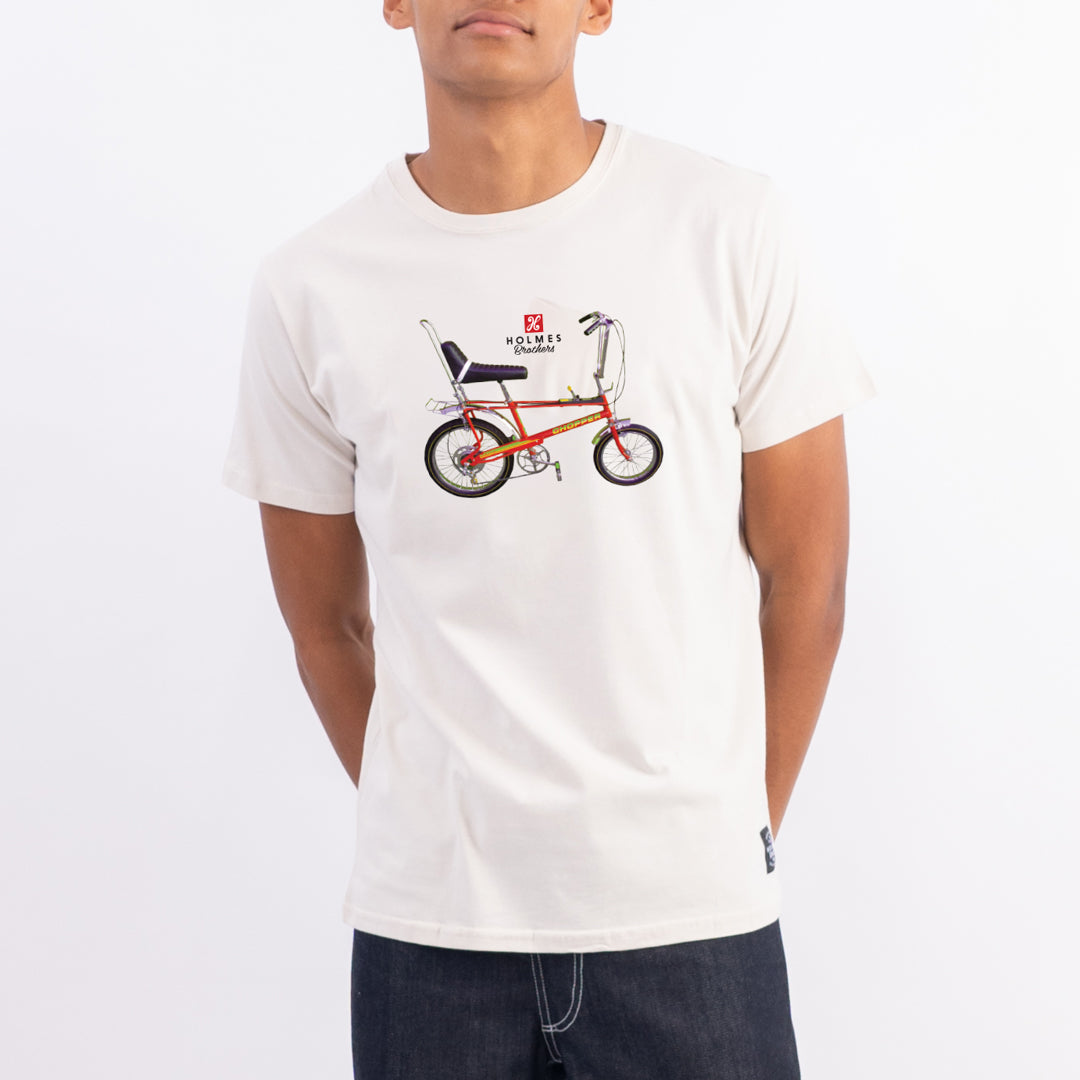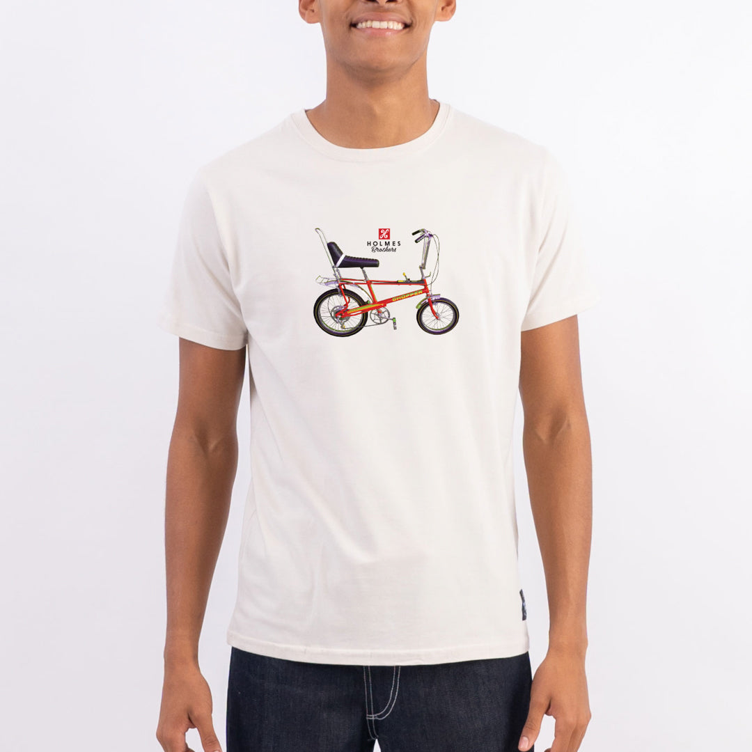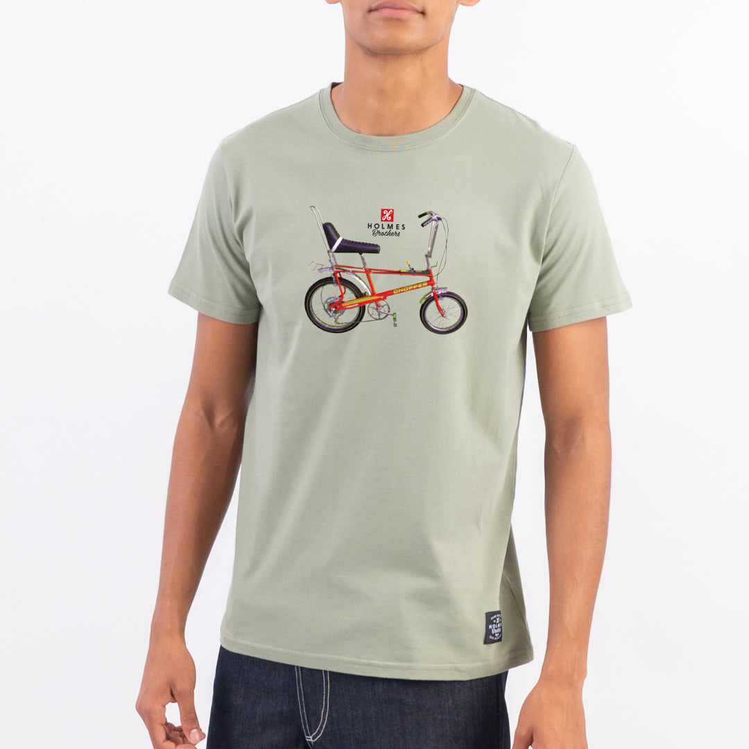 The Chopper Tee is a cotton crew neck tee featuring the nostalgic chopper bicycle.