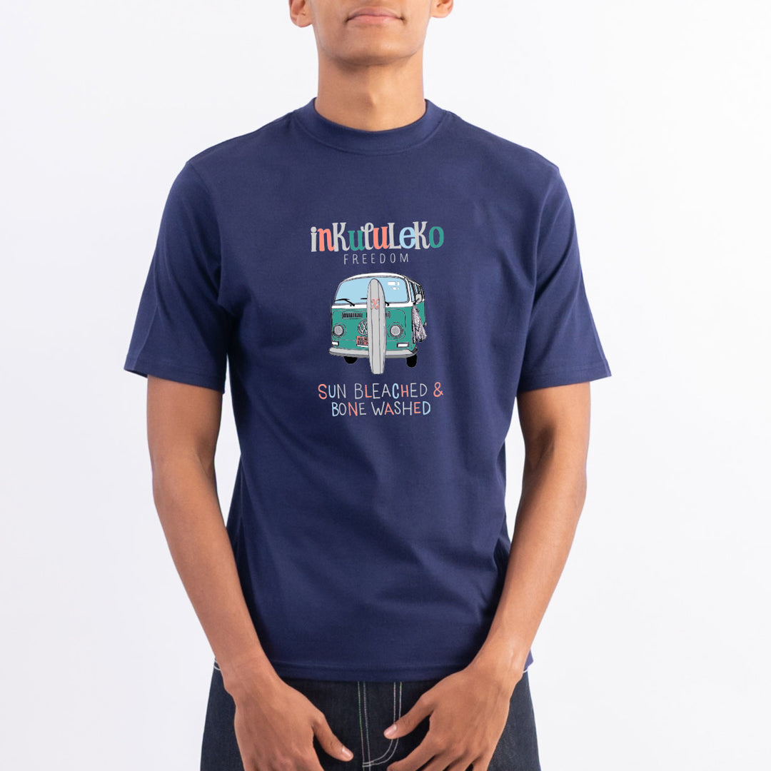 The Inkululeko Tee is a cotton crew neck tee featuring a combi. Inkululeko means freedom in Zulu.