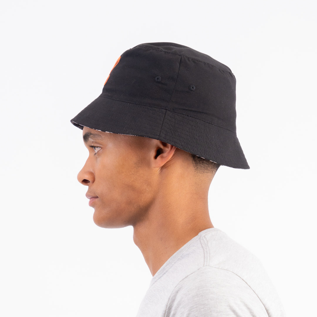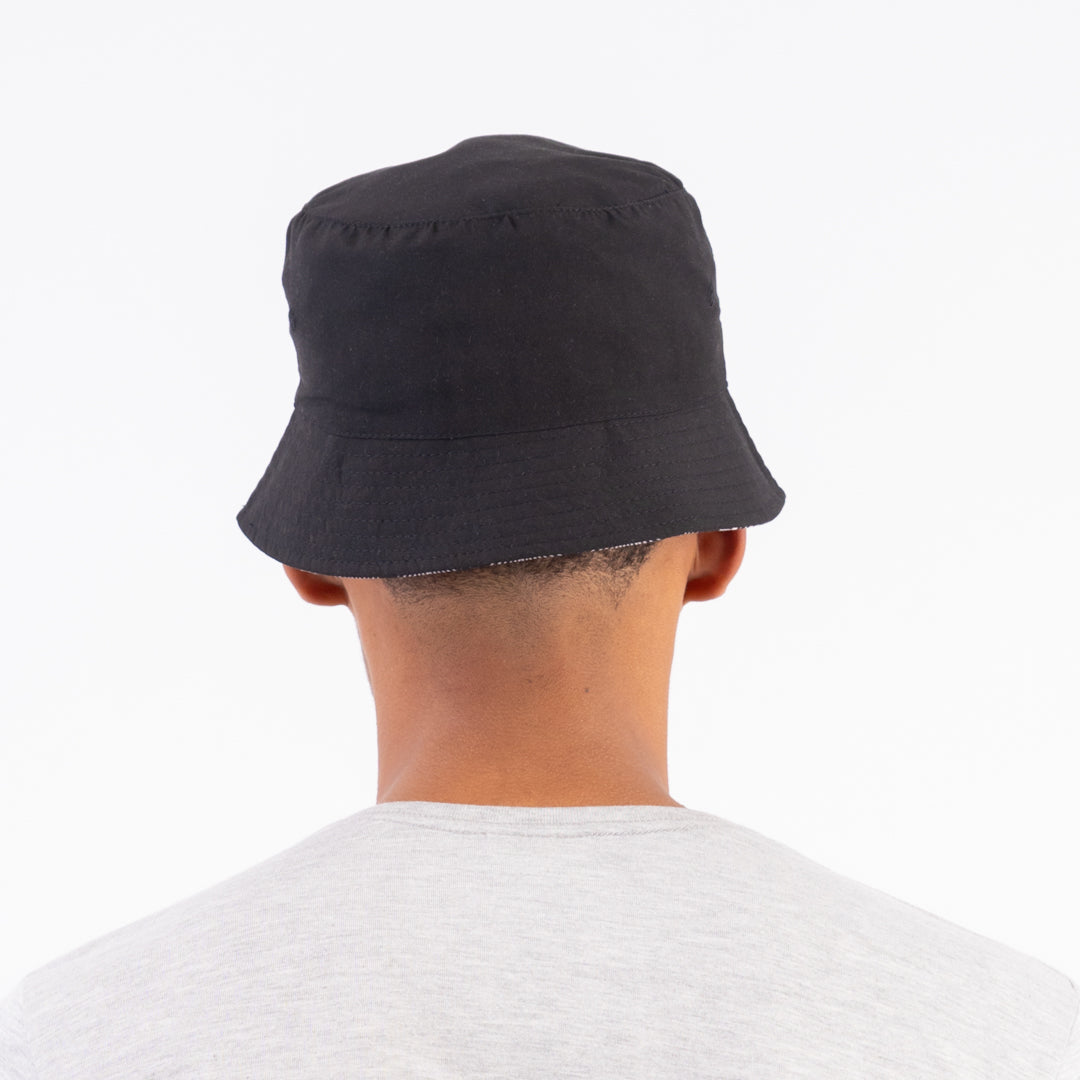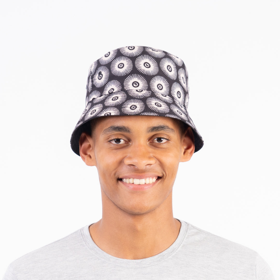 The Dot Swhe Swhe Bucket Hat is super versatile being fully reversible with African inspired print on one side and plain black on the other side with a small H embroidery.