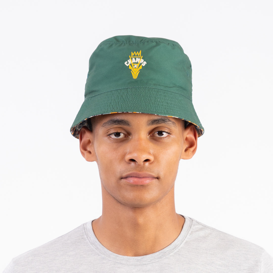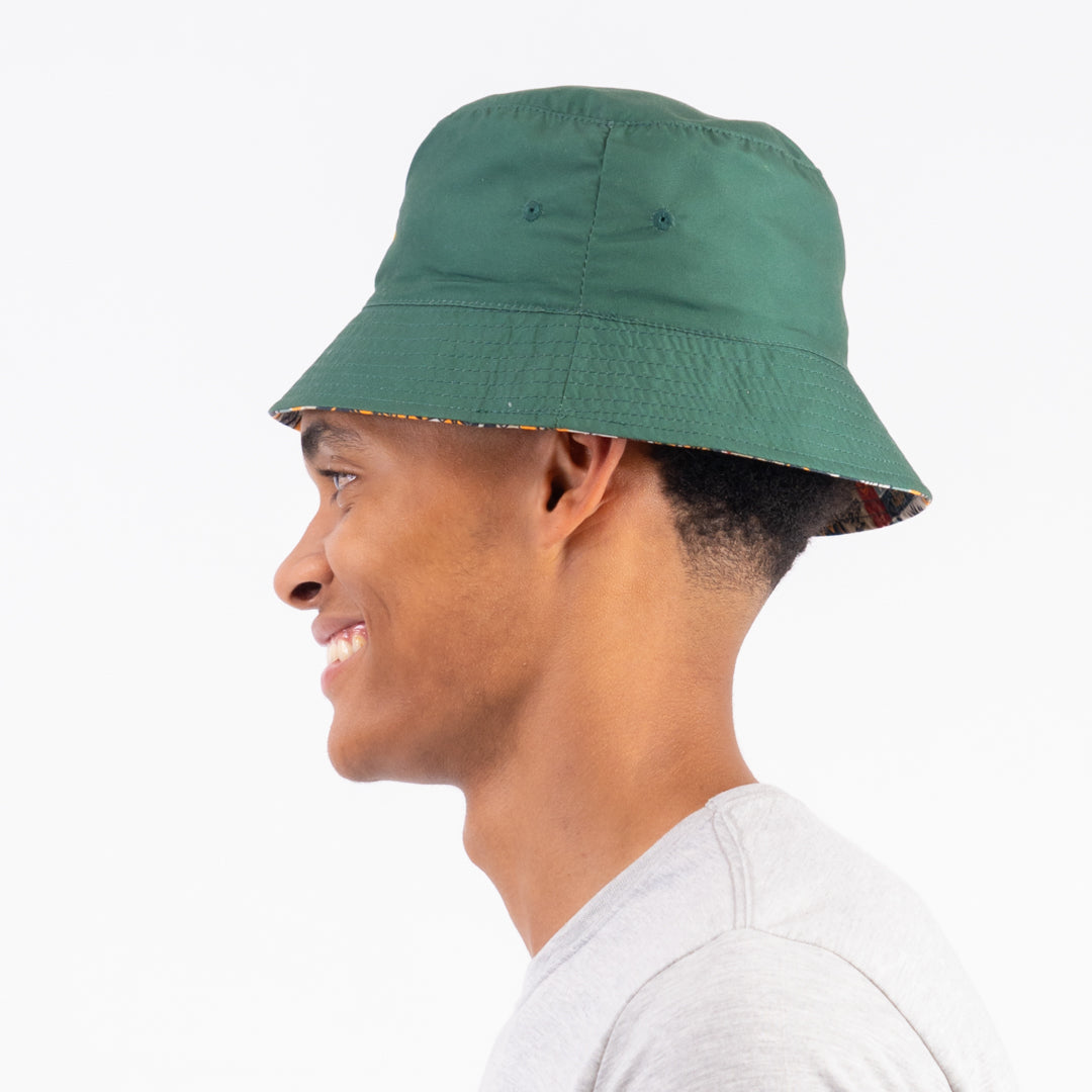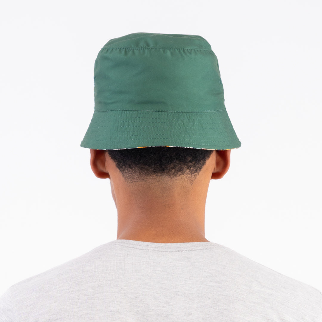 The Rugby Bucket Hat is super versatile being fully reversible with a rugby inspired print on one side and plain green on the other side with a small embroidery.