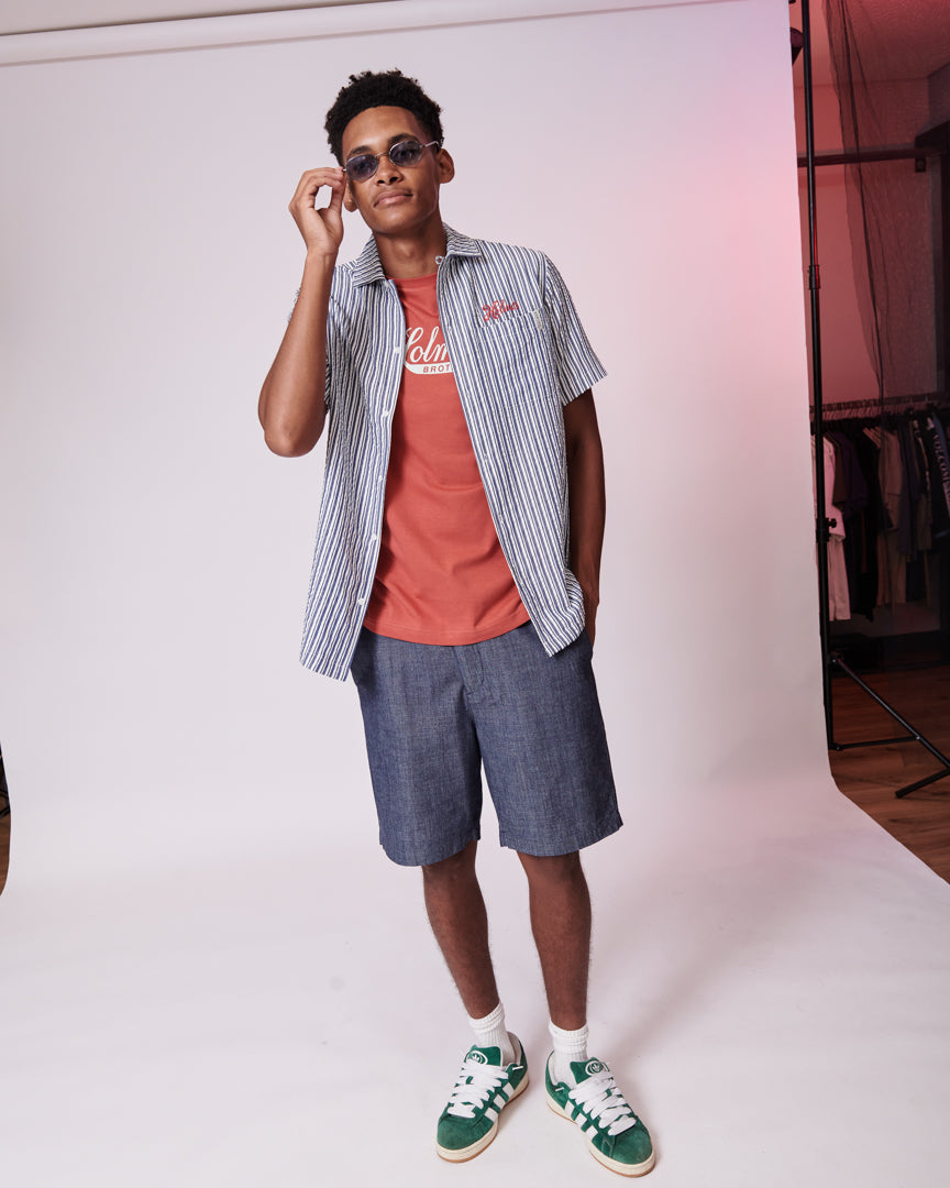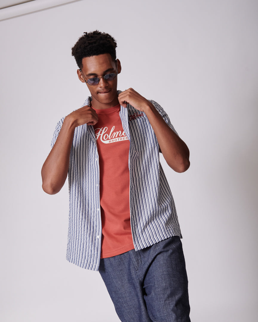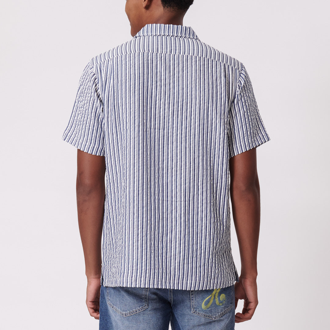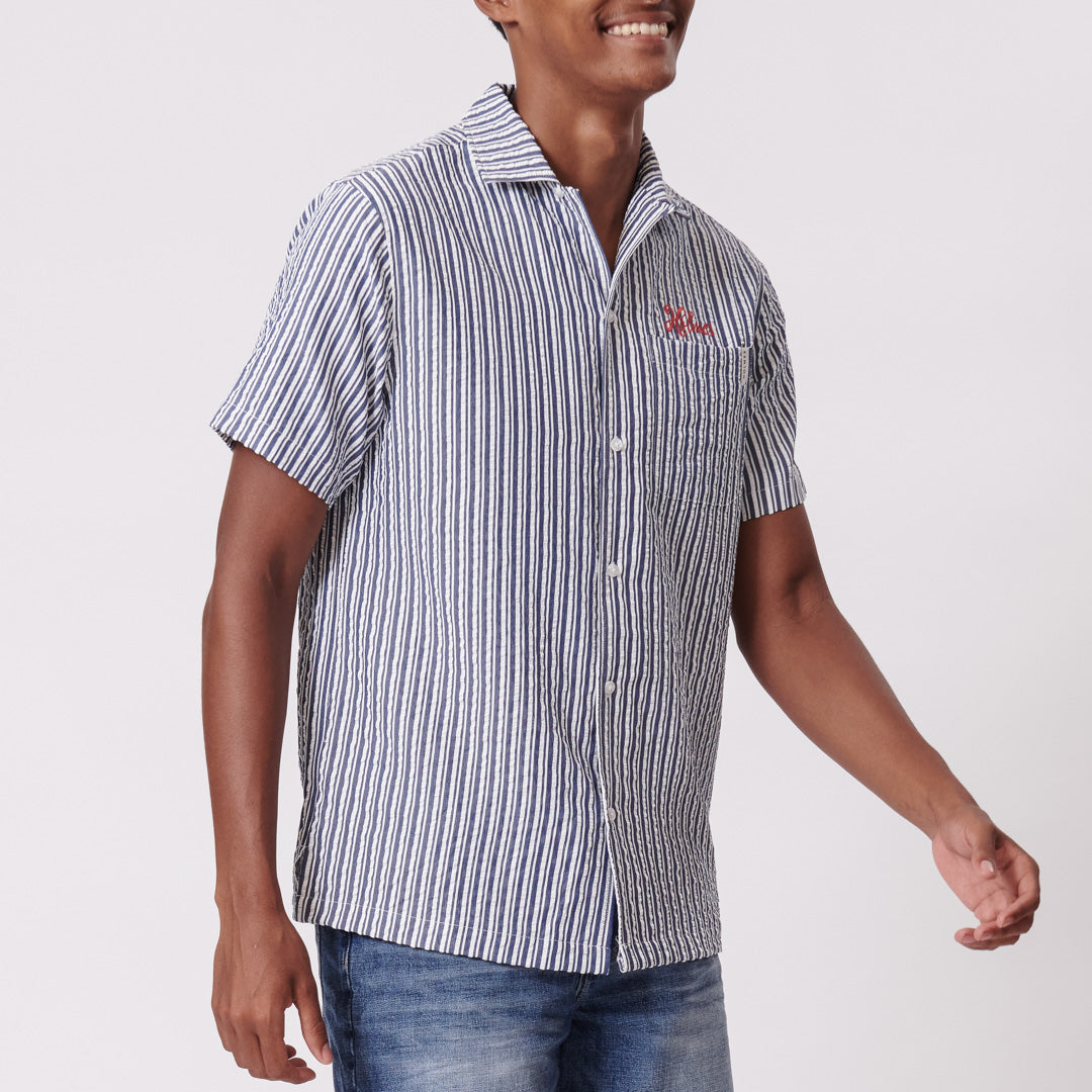 Cooler than a sax solo at golden hour. The Jazz Shirt hits all the right notes with its classic navy stripes and smooth style.