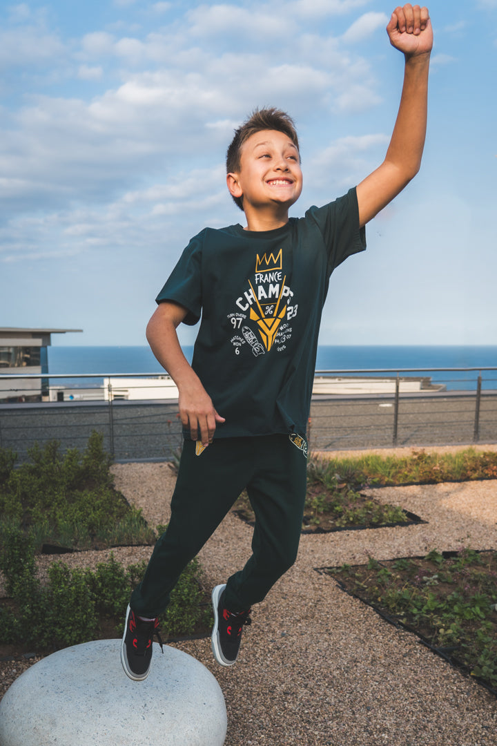 The Boy's Champs tee made from premium cotton is the ideal combination of comfort and durability for every adventure. Featuring a rugby graphic on the front.