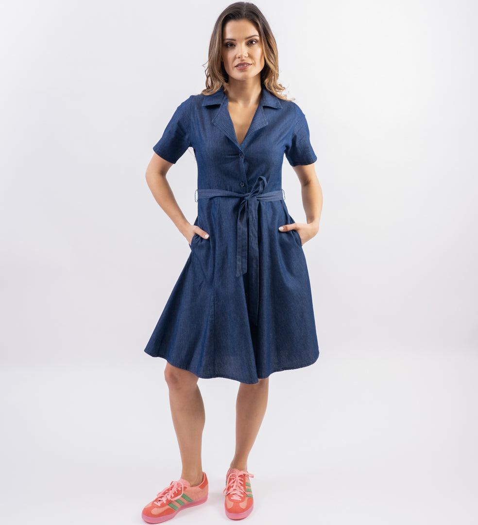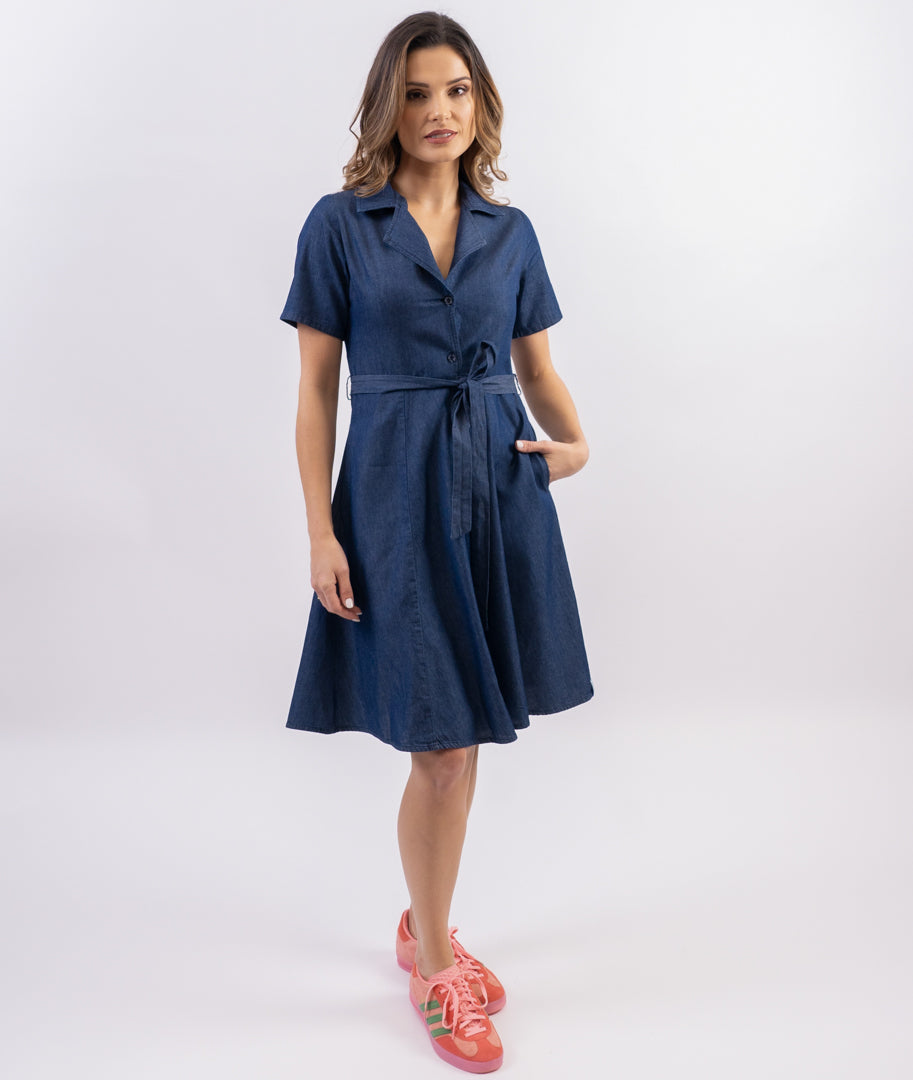 100% cotton light weight denim dress.