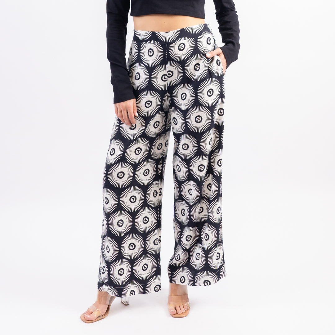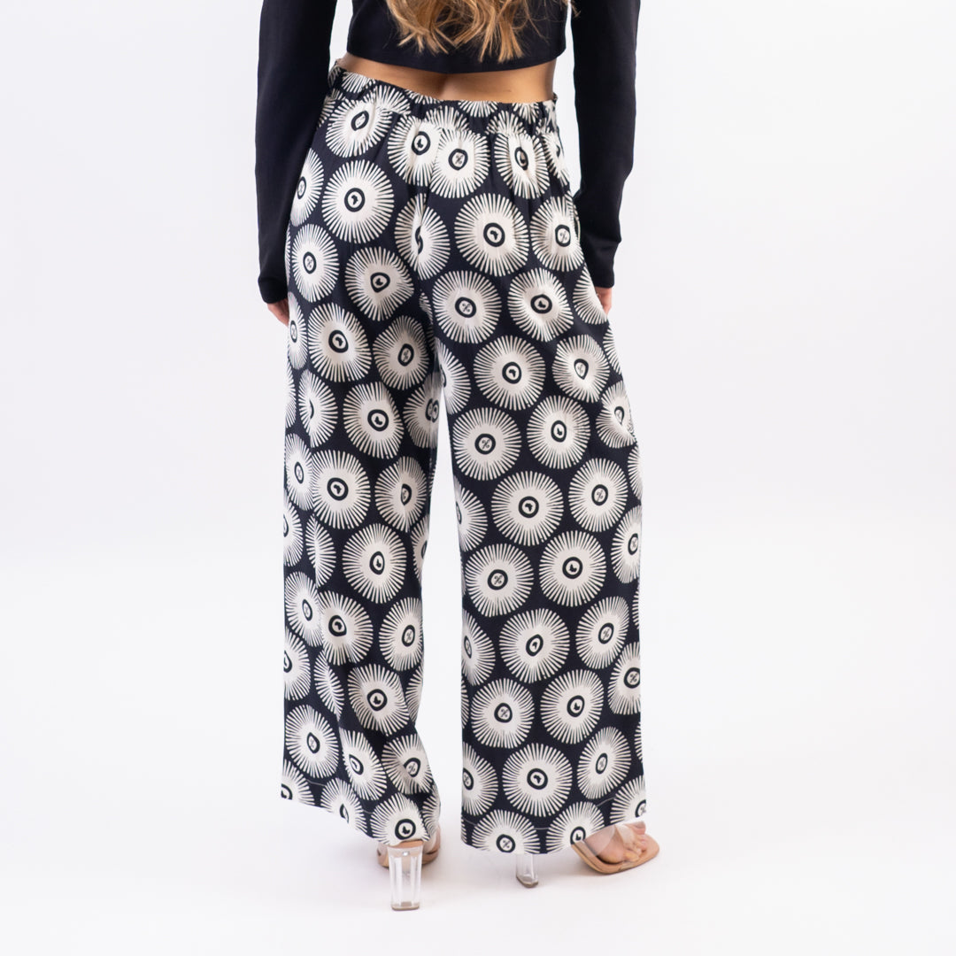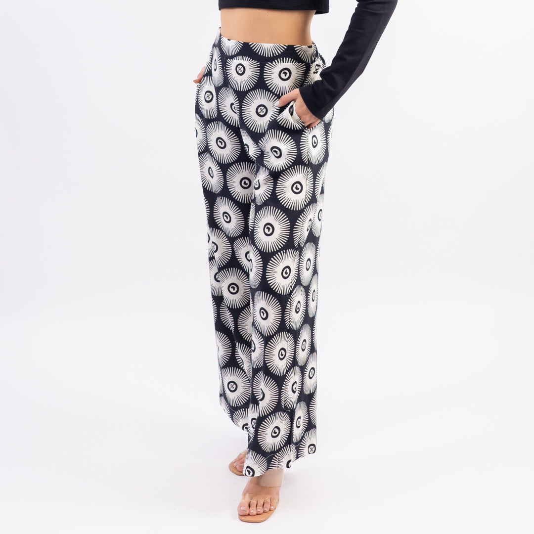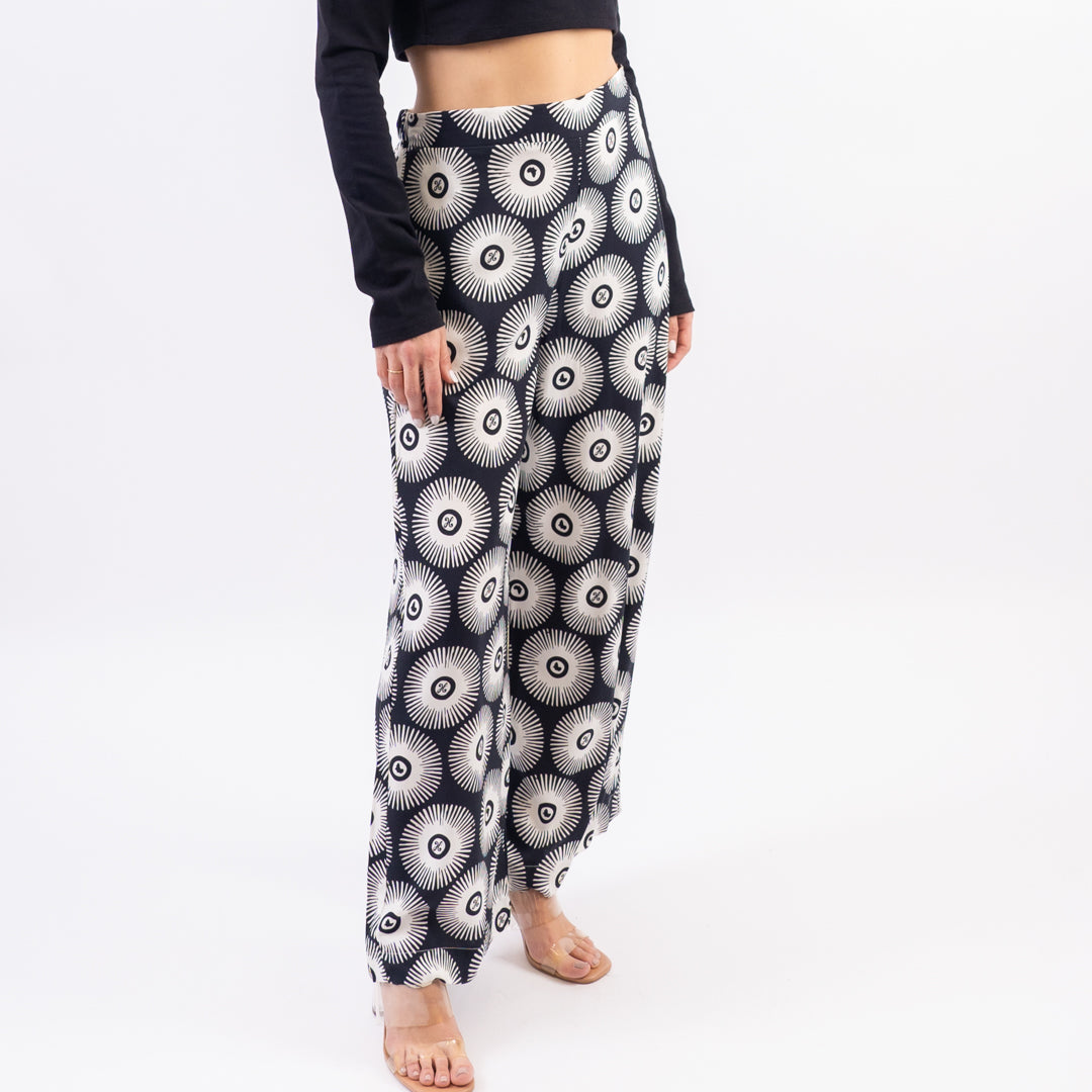 The Women's Sunshine Pant features a breezy flowy fit with African sun print. Made for sunny strolls and spontaneous adventures.